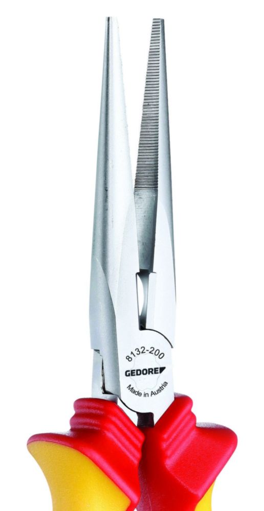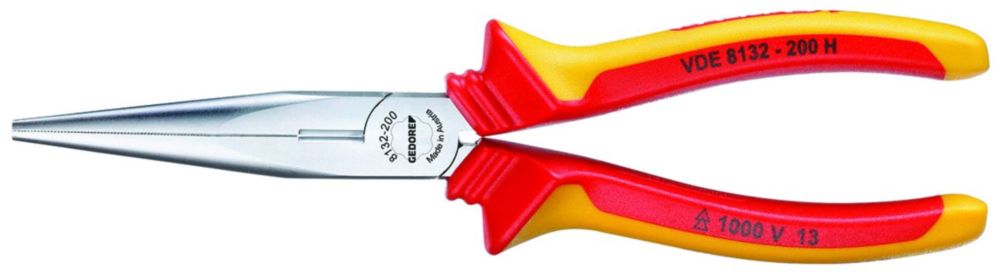 LIEFERUMFANG: 1 x GEDORE VDE-Flachrundzange mit Hüllenisolierung, gerade, Länge: 200 mm, Gewicht: 235 g, Artikelnummer: VDE 8132-200 H