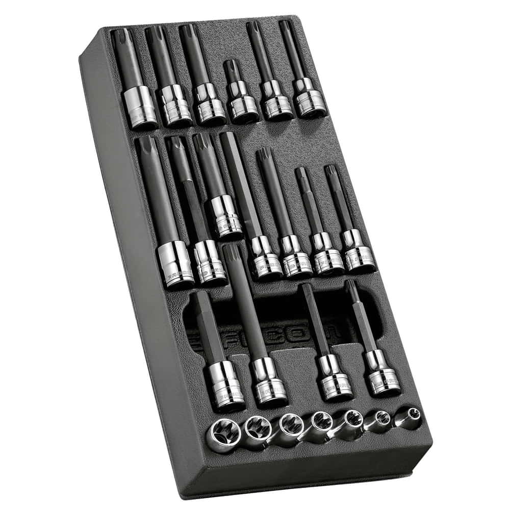 5 x Bitstecknüsse Schlitz, 12,5mm (1/2'), 10 cm lang in SW: 25 - 27 - 28 - 29 - 30 mm