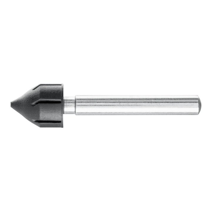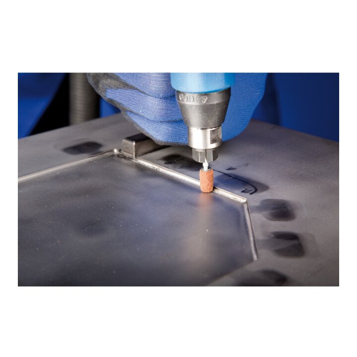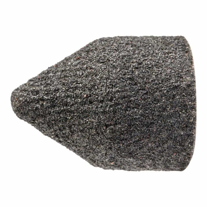Ein geschlitzter Gummikörper nimmt die nahtlos geformten Schleifkappen auf. Durch die Zentrifugalkraft werden die Schleifkappen beim Arbeiten gehalten.