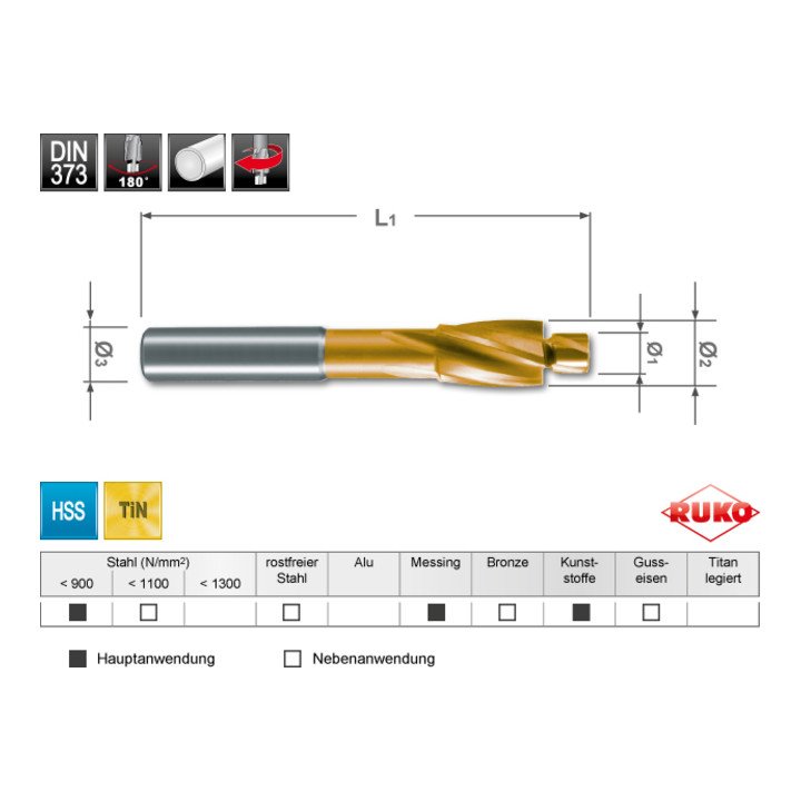 Zur Herstellung von Senkungen für Zylinderkopfschrauben, Sechskantschrauben und Muttern. Ideal zum grat- und ratterfreien Senken bei Stahl, Guß, Bunt- und Leichtmetallen. Beste Ergebnisse bei niedriger Schnittgeschwindigkeit.