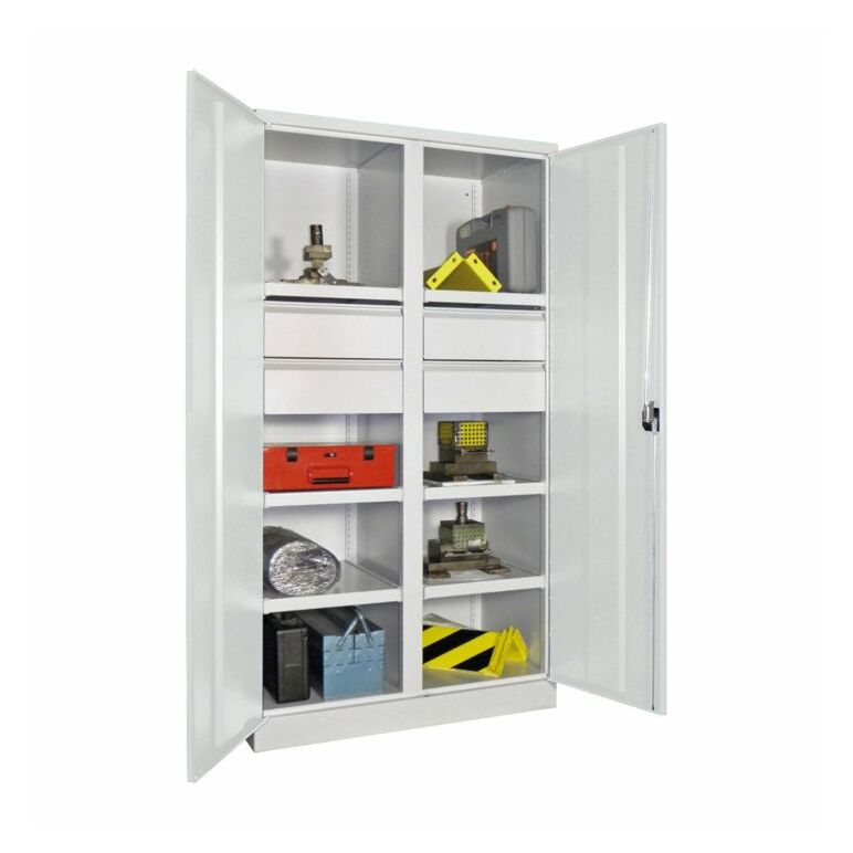 Pavoy Schwerlastschrank H1950 x B1040 x T630, 6 Böden, Schubladen: 4x175, Korpus / Front Lichtgrau