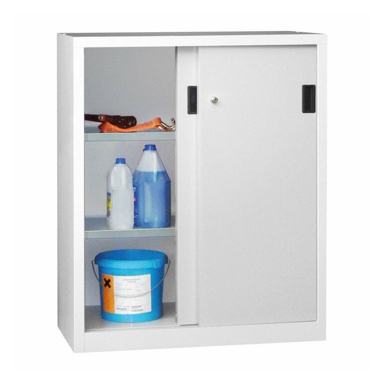 Schiebetürenschrank, Vollblechtüren, 2 verzinkte Böden, ohne Trennwand, BxTxH 1000x500x1200 mm, Korp us und Front RAL 7035 lichtgrau