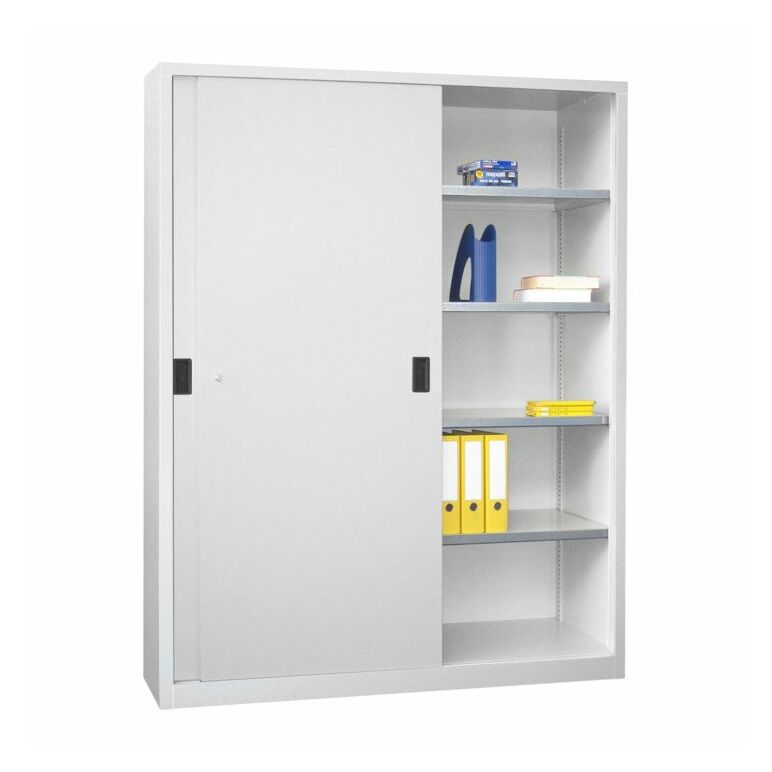 Pavoy Schiebetürenschrank H1950 x B1500 x T600, Böden verzinkt, Korpus / Front Lichtgrau