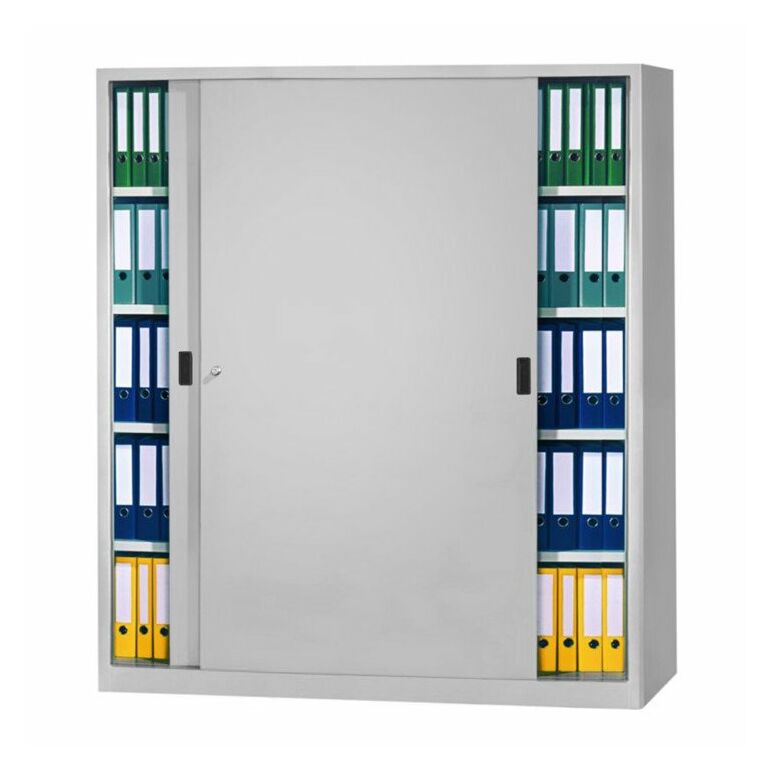 • Stahl-Schiebetürschrank mit Trennwand mit Vollblechtüren
