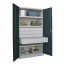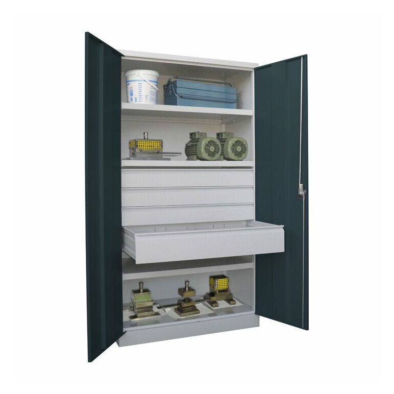 Pavoy Schwerlastschrank, 3 Fachböden a 200 kg, 4 Schubladen, Ral 7035/7016