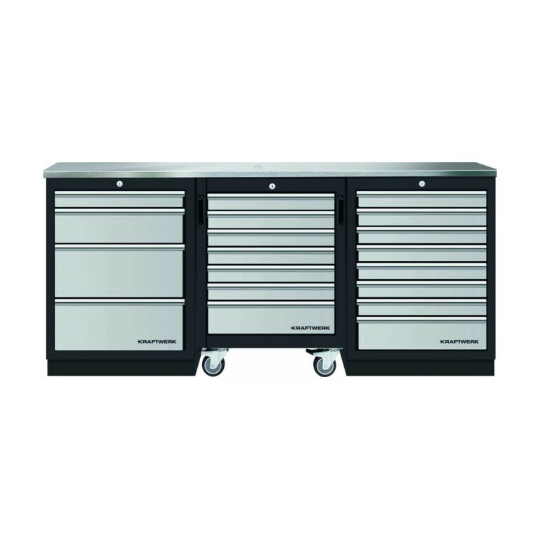 Kraftwerk Mobilio 3er Kombi mit Werkstattwagen, Edelstahl, 3 Schublade