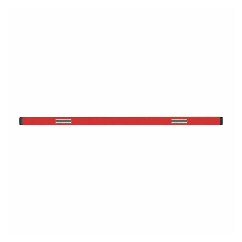 aus Aluminium · Oberfläche rot, pulverbeschichtet · Messgenauigkeit bei Normallage mind. 0,5 mm/m, bei Umschlagmessung 0,5 mm/m · gefräste Messfläche · mit Gummiendkappen als Stoßschutz und spiegelfreie Rundlibelle · ab 180 cm Länge mit zweiter Vertikallibelle · Profilgewicht 740 g/lfm Weitere technische Eigenschaften: · Farbe: rot · Material: Aluminium · Genauigkeit: ± 0,5mm/m