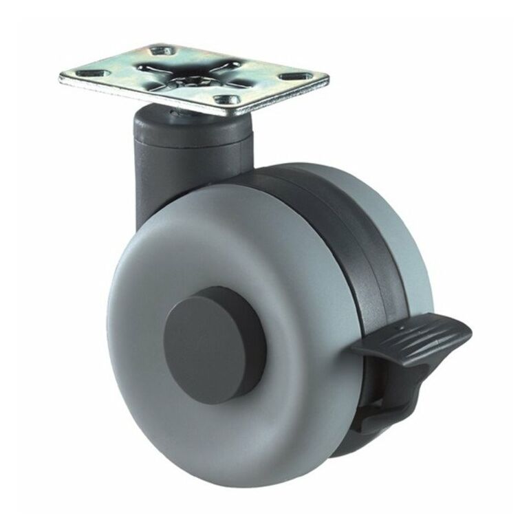 BS Kunststoff-Doppelrolle m.Feststeller 60mm 40kg m.FeststellerPUR grau 47x47mm