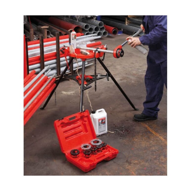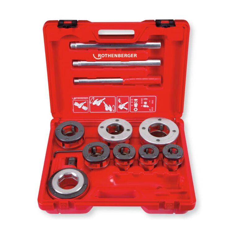 - Schnellwechsel-Aufnahme der Gewindeschneidkluppen für mühlosen Austausch, passend für alle ROTHENBERGER Hand- und Elektro-Gewindeschneidkluppen