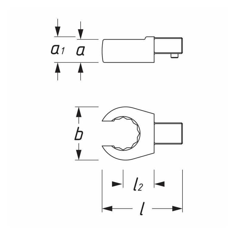 Einsteck-Ringschlüssel ∙ offen 6612C-16 ∙ 9 x 12 mm Einsteck-Vierkant massiv ∙ Außen Doppelsechskant Profil ∙ sw 16 mm