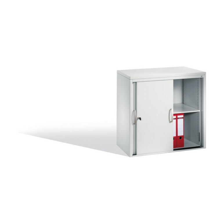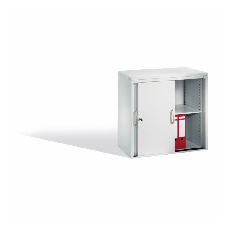 • 1x C+P Akten-Sideboard Acurado mit Schiebetüren, 2 Ordnerhöhen, H720xB800xT400mm Front Lichtgrau Korpus Lichtgrau