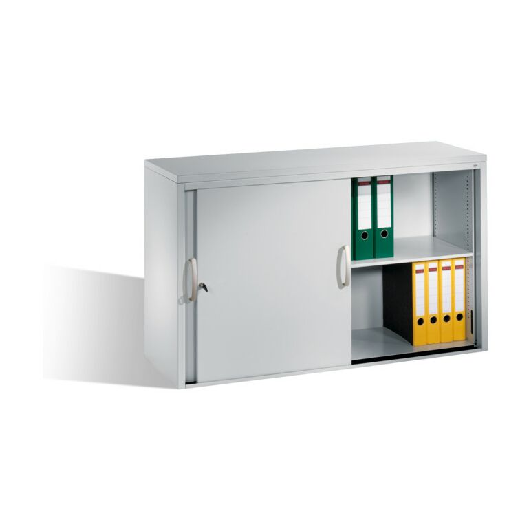 - 1x C+P Akten-Sideboard Acurado mit Schiebetüren, 2 x 2 Ordnerhöhen, H720xB1200xT400mm Front Lichtgrau Korpus Lichtgrau