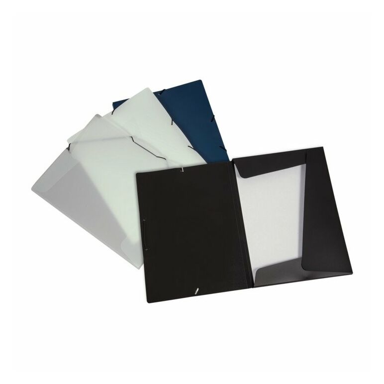 DIN A4 Eckspann- und Collegemappen aus stabilem Polypropylen in verschiedenen Farben.