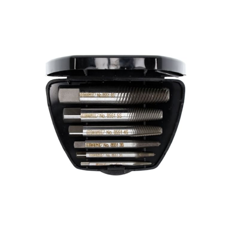 Lieferumfang: 1 x 6-teiliger Schraubenausdreher-Satz in schwarzer Kunststoffbox, M3-M24, Chrom-Vanadium Stahl, 54-56 HRC, Nettogewicht: 230 g, 8551 S-006 / 2659344