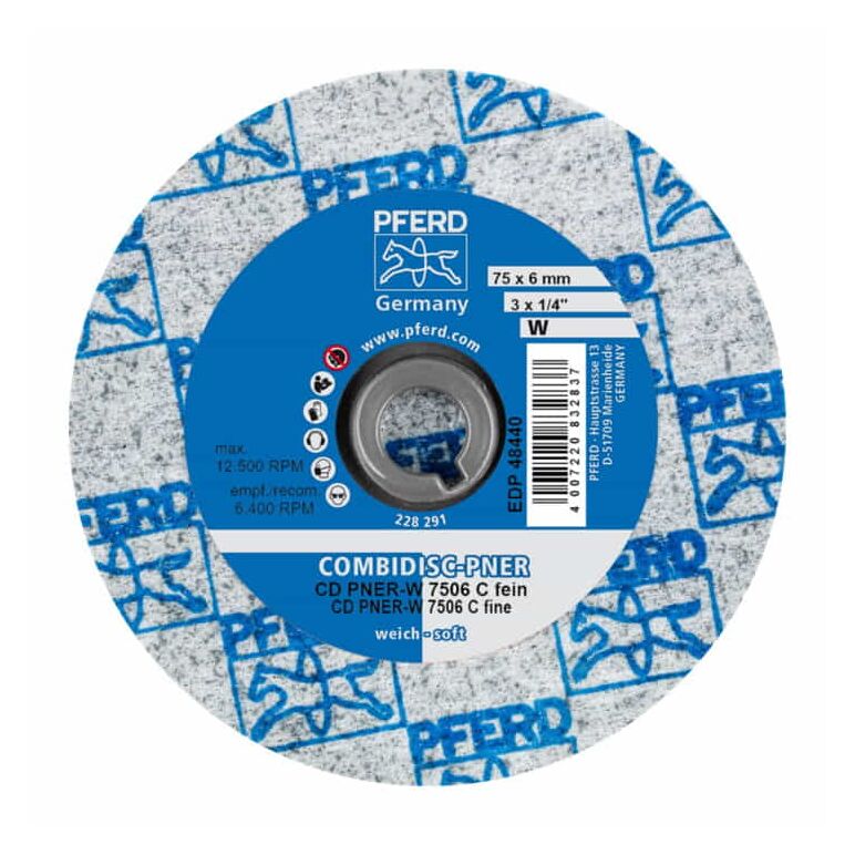 PFERD COMBIDISC verpresste Vliesronde CD PNER Ø 75 mm Weich SIC Fein für Finish