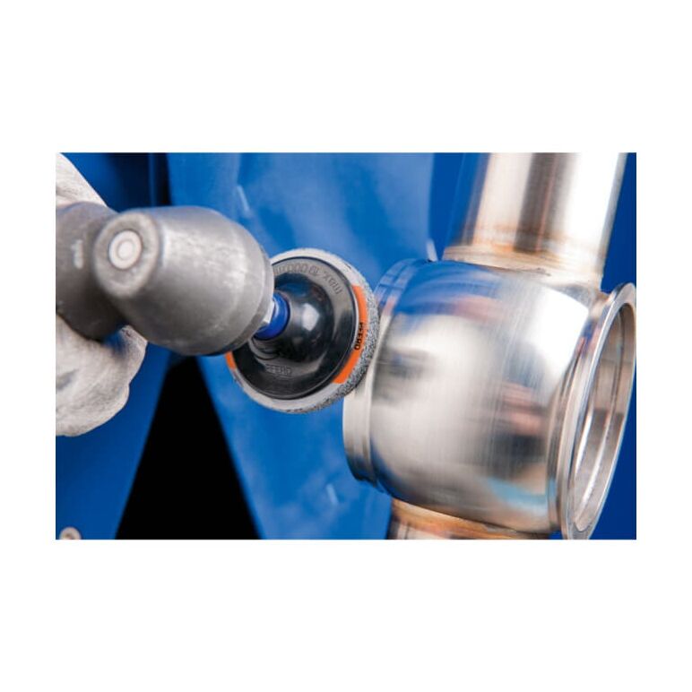 • Besonders für die Bearbeitung kleiner und mittlerer Flächen an Bauteilen aus Edelstahl (INOX) geeignet