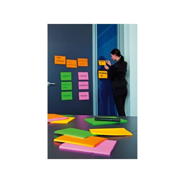 Dank der Super Sticky Formel haften die Post-it® Super Sticky Meeting Notes sicher, auf praktisch allen Oberflächen.