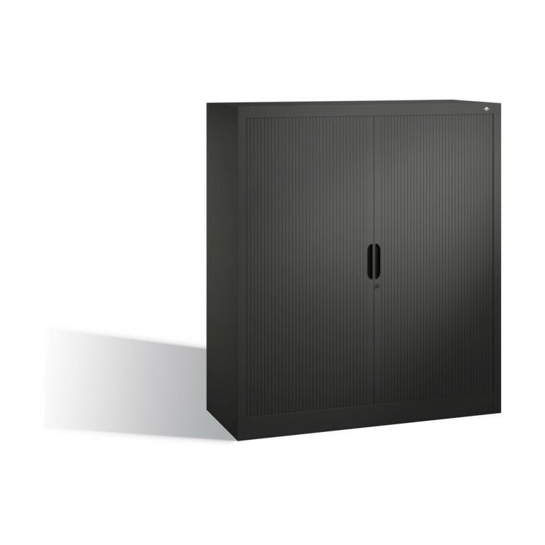 C+P Akten-Sideboard Omnispace mit Rollladen, 3 Ordnerhöhen, H1345xB1200xT420mm Schwarzgrau