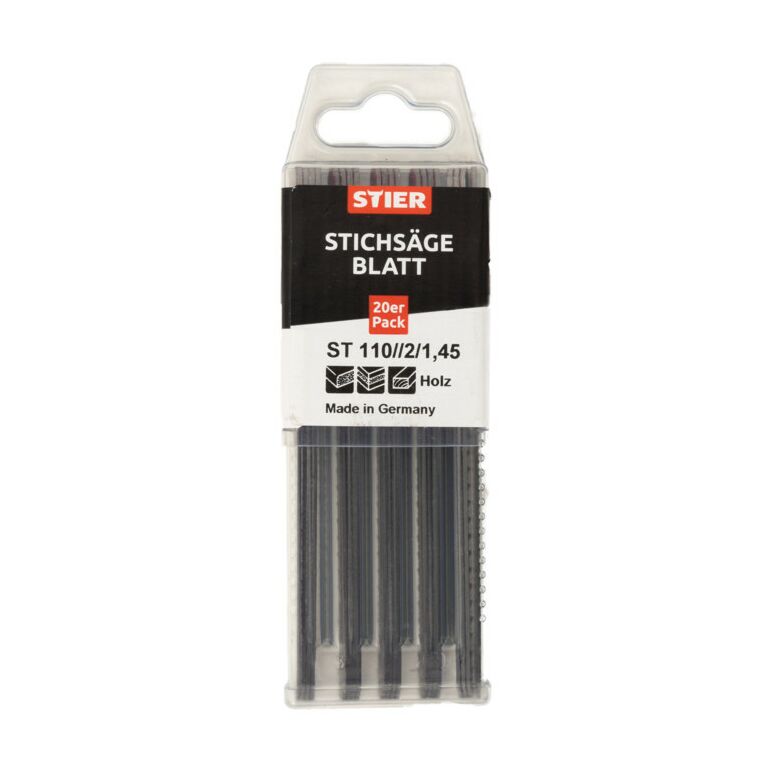 STIER Stichsägeblatt ST 110/2/1,45 für sehr saubere splitterfreie Schnitte in Küchenarbeitsplatten und HolzEigenschaften:WICHTIG: Pendelhub der Maschine abschaltenkreuzgeschliffenes Chrom-Vanadium Stichsägeblatt25 - 60 mm Materialdickesehr saubere splitterfreie SchnitteSpitzzahn, kreuz geschliffene konische Geometrieextra langes BlattOber- und Unterkante 180° beidseitig SplitterfreiDie Holzfaser wird aufgrund der zum Holz schräg stehenden Zahnform zerschnittenCT-geschliffene (kreuzgeschliffen, konisch) Flanken berühren nicht die Schnittfuge, daher sehr saubere Schnitte.AnwendungsgebieteHolzWeichholzKonstruktionsholzbeschichtete PlattenKüchenarbeitsplattenSperrholzMultiplexTischlerplattenVergleichbar mitBosch T308BMetabo 623998000STIER-Produkte werden von Profis aus Handwerk und Industrie entwickelt und verbinden in höchstem Maße Leistungsstärke und Ergonomie. Kraftvoll. Widerstandsfähig. Langlebig.Tausende Kunden vertrauen dem besten Preis-Leistungs-Verhältnis. Erlebe auch du die STIER Produktpalette auf unserer Markenseite.