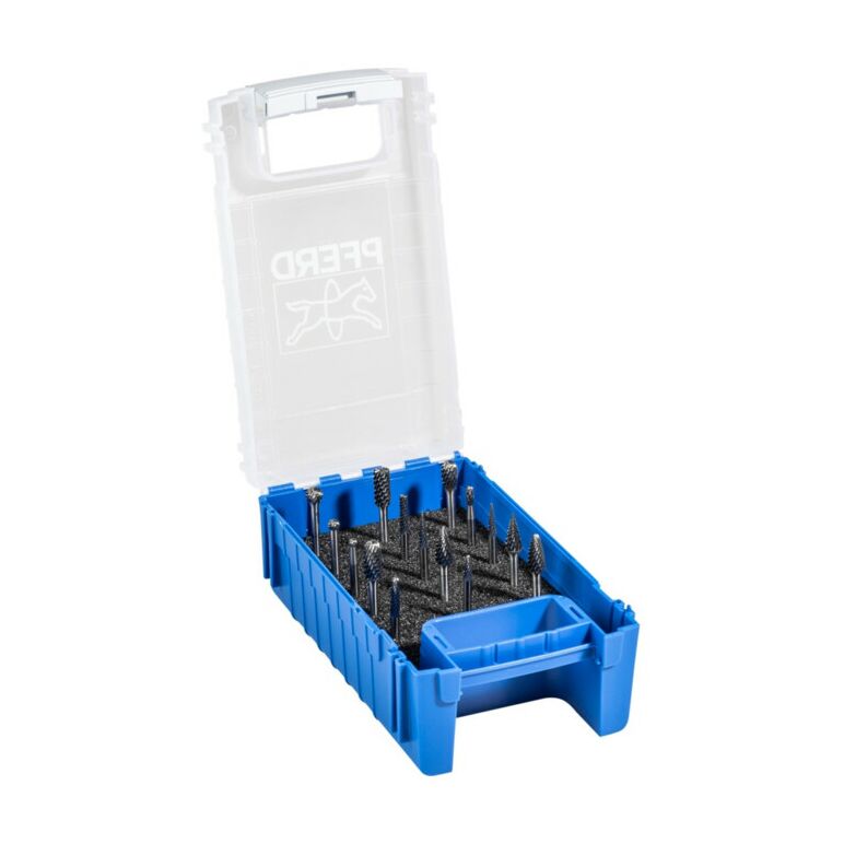 PFERD Hartmetall Kleinfrässtift Set 15-tlg. Zahnung 3 PLUS Ø 6/4/3mm Schaft-Ø 3mm universal mittel kreuzverzahnt