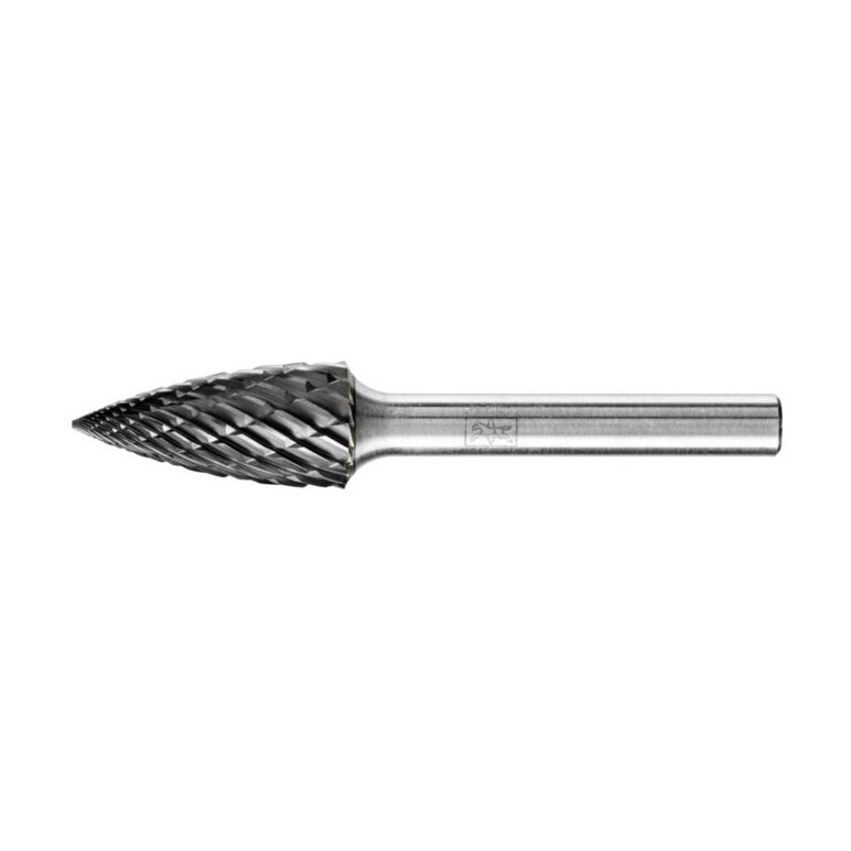 Eigenschaften:Spitzbogenförmiger Frässtift nach DIN 8032, Spitze abgeflacht