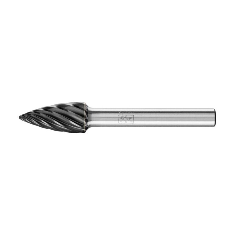 Eigenschaften:Spitzbogenförmiger Frässtift nach DIN 8032, Spitze abgeflacht.