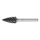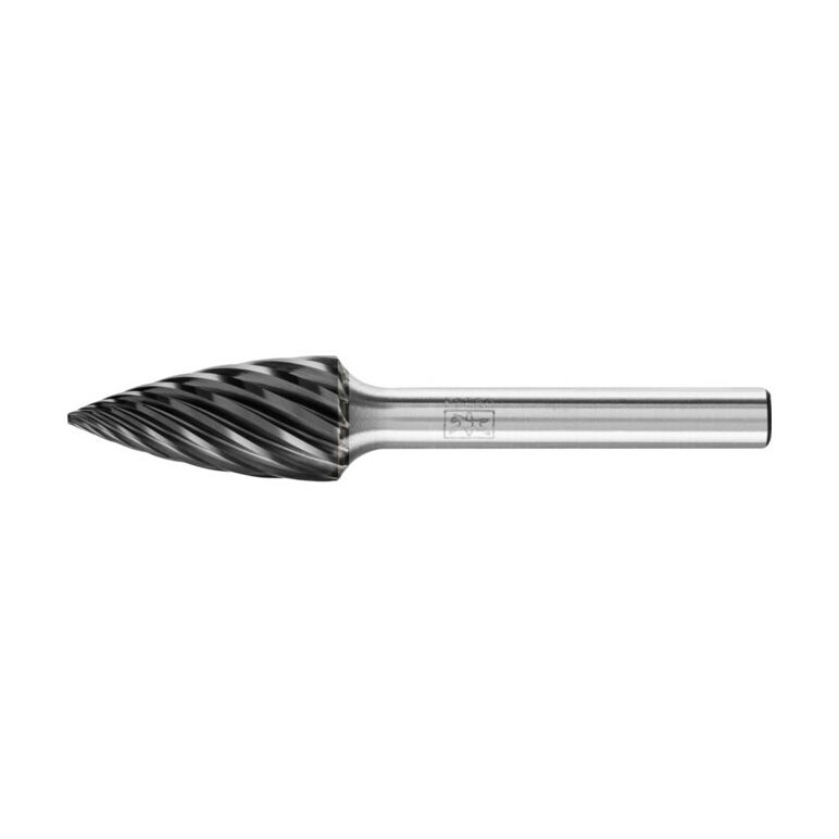 Eigenschaften:Spitzbogenförmiger Frässtift nach DIN 8032, Spitze abgeflacht.