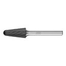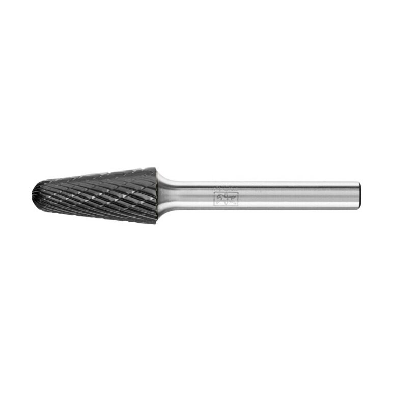 Eigenschaften:Rundkegelförmiger Frässtift mit runder Kuppe nach DIN 8032 und Verzahnung nach DIN 8033.