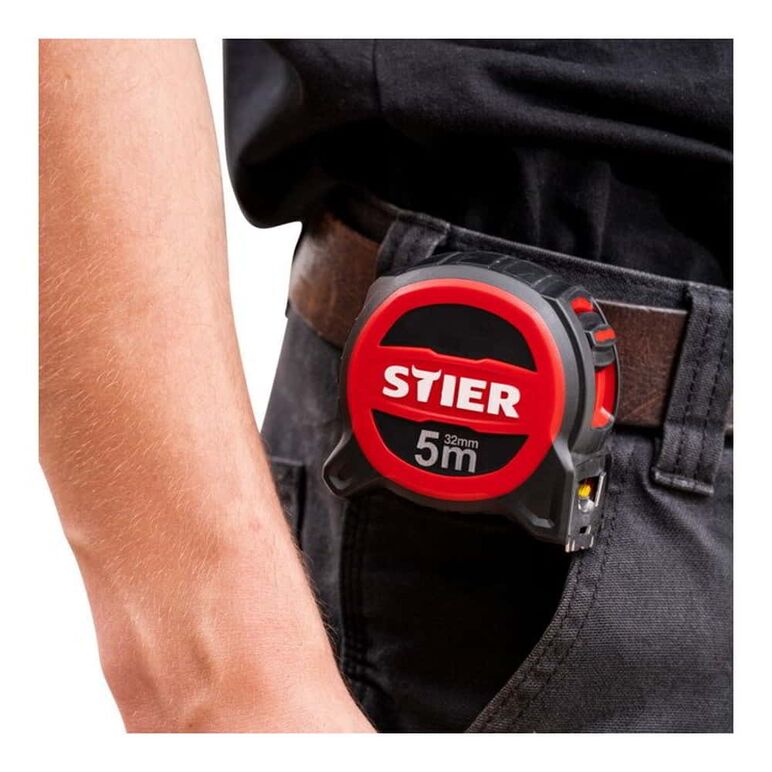 Das STIER Taschenbandmaß überzeugt durch seine vielfältigen Produkteigenschaften. Durch sein stabiles Gehäuse ist es robust, haltbar und strapazierfähig. Eine gut leserliche Stricheinteilung ermöglicht eine schnelle Direktablesung und erhöht den Arbeitskomfort. Zusätzlich sorgt ein praktischer Edelstahlhaken für einen sicheren Halt, ohne Verrutschen, an vielzähligen Werkstücken.Eigenschaften:8 Meter LängeBeidseitig bedruckt, 32mm BlattbreiteNylon-Wickelblatt mit 10-mal höherer Verschleißfestigkeit als herkömmliche, nylonbeschichtete BlätterBesonders stabiler Gürtelclip macht das Maß jederzeit griffbereit und ermöglicht einen einfachen TransportMit integriertem magnetischen Edelstahlhaken für eine hohe Abrutschsicherheit und akkurate Messungen - selbst bei langen DistanzenReibungsloses und sicheres zurückziehen des Bandmaßes durch HochleistungsfederAnwendungsgebiete:Für Innen- und Außenmessungen von Werkstücken jeglicher ArtLieferumfang:1 x Taschenbandmaß 8mSTIER-Produkte werden von Profis aus Handwerk und Industrie entwickelt und verbinden in höchstem Maße Leistungsstärke und Ergonomie. Kraftvoll. Widerstandsfähig. Langlebig.Tausende Kunden vertrauen dem besten Preis-Leistungs-Verhältnis. Erlebe auch du die STIER Produktpalette auf unserer Markenseite.