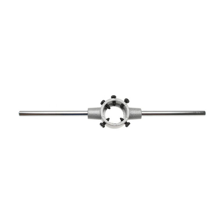 Eigenschaften:Stahlgriffe, abschraubbarStahlgriffbreite 215 mmHaltekopf aus Zink-Druckguss mit 5 Spannschrauben zur Befestigung des Schneideisens