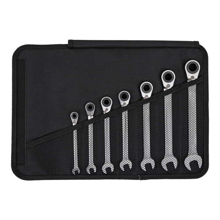 Hochwertiger Maul-Ringratschenschlüssel-Satz SW 8 - 19 mm von STIER - mit Ringstop-Funktion für müheloses Arbeiten und verstaut in praktischer Textiltasche.Eigenschaften:Alle Standardgrößen in hochwertiger, praktischer RolltascheRing-Stop-Funktion verhindert abrutschen des Ratschenkopfes bei der ArbeitMit Umschaltfunktion für schnellen Wechsel der AnzugsrichtungRingratschenmechanismus feinverzahnt mit 72 Zähnen für die Arbeit auch in engen Gegebenheiten12H-Profil sorgt für optimale Drehmomentübertragung am SchraubenkopfFlache AusführungAus qualitativ hochwertigem Chrom-Vanadium-Stahl gefertigtIn mattchromierter AusführungÖsen an der Tasche für einfache Aufhängung in Werkstatt o.ä.Anwendung:Für den privaten wie für den professionellen Gebrauch wie Kfz, Maschinenbau, Industrie, Montage und Heimwerker geeignetIn Kfz-Betrieben, Reparatur- und Montagebetrieben, MetallgewerbeLieferumfang:7 x STIER Ringstop Maul-Ringratschenschlüssel, SW 8 | 10 | 12 | 13 | 15 | 17 | 19 mm1 x Transport- und AufbewahrungstascheSTIER-Produkte werden von Profis aus Handwerk und Industrie entwickelt und verbinden in höchstem Maße Leistungsstärke und Ergonomie. Kraftvoll. Widerstandsfähig. Langlebig.Tausende Kunden vertrauen dem besten Preis-Leistungs-Verhältnis. Erlebe auch du die STIER Produktpalette auf unserer Markenseite.
