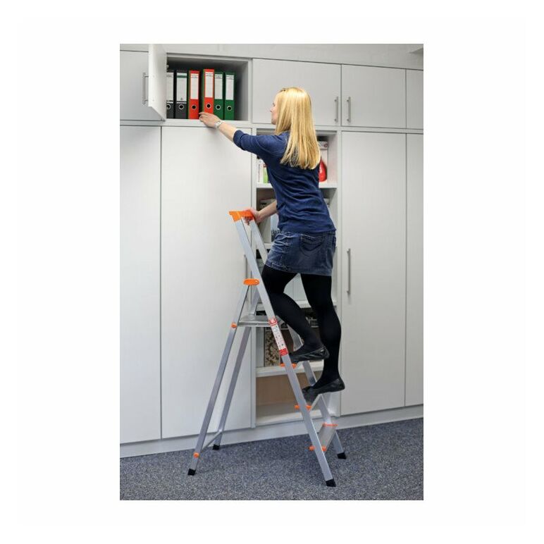- Ablage für Kleinteile und Eimerhaken mit Sicherheitsbügel integriert