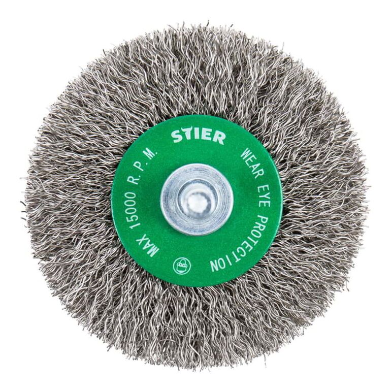 STIER Rundbürste Ø 70 mm, Schaft-Ø 6 mm, 0,3 mm, gewellt, Edelstahl