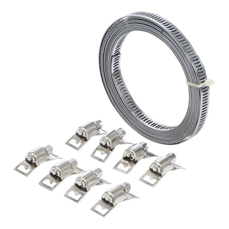 Eigenschaften:Durch 3 m-Endlosband variabelBandbreite 8 mmkann zu beliebig langen Schlauchklemmen geformt werdeninkl. 8 Klemmverschlüssen (Schlitzschraube)
