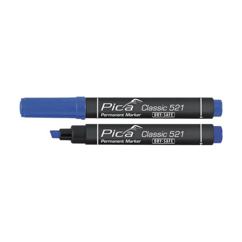 Pica Permanentmarker Classic INSTANT WHITE blau Strich-B.2-6mm Keilspitze