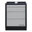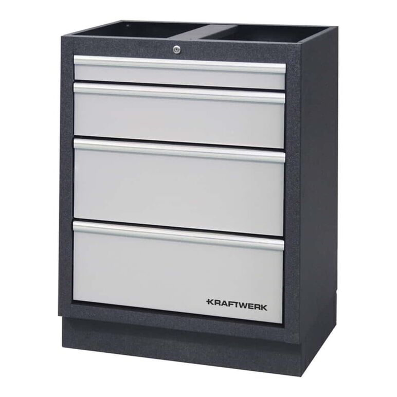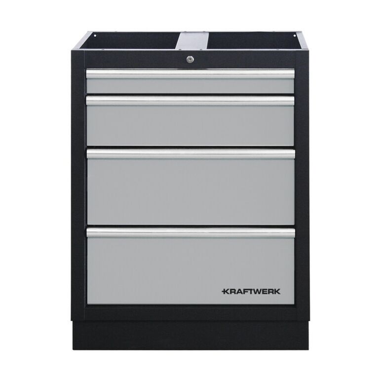 Eigenschaften:Kraftwerk 3964-04 Mobilio Schubladenschrank 4 SchubladenUnterbauschrank mit 4 Schubladen aus dem Werkstatt System MOBILIO von KraftwerkDie kugelgelagerten Schubladen sind einzeln verriegelbar und zentral abschließbarPassend für alle Kraftwerk WerkzeugeinlagenDie Lieferung erfolgt fertig montiert, ohne Arbeitsplatte