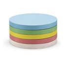 - 250 selbstklebende Kommunikationskarten, rund (D = 190 mm), in 5 Farben sortiert (rosa, grün, gelb, weiß blau).