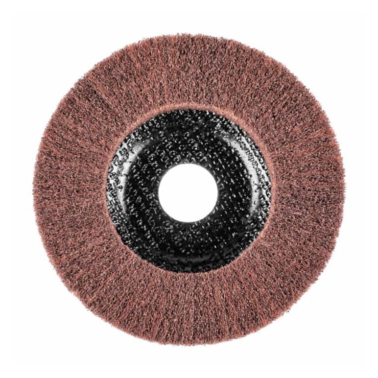 • Die Schleifvlieslamellen sind auf einem Glasgewebestützteller aufgeklebt, wodurch die Discs stirnseitig eingesetzt werden können