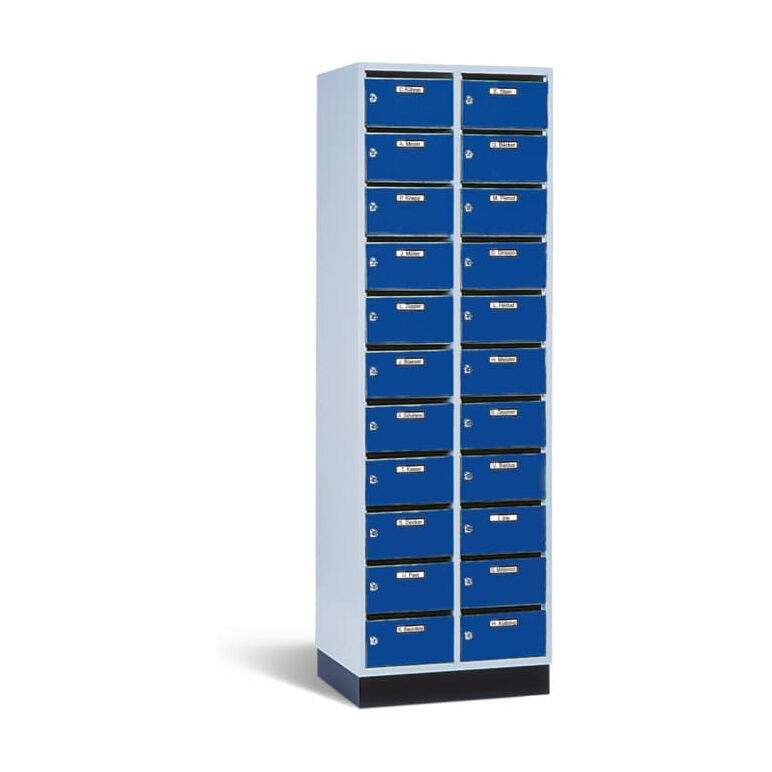 - 1x C+P Verteilerschrank Intro mit 22 Fächern, H1950xB620xT500mm Front Enzianblau Korpus Lichtgrau