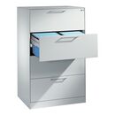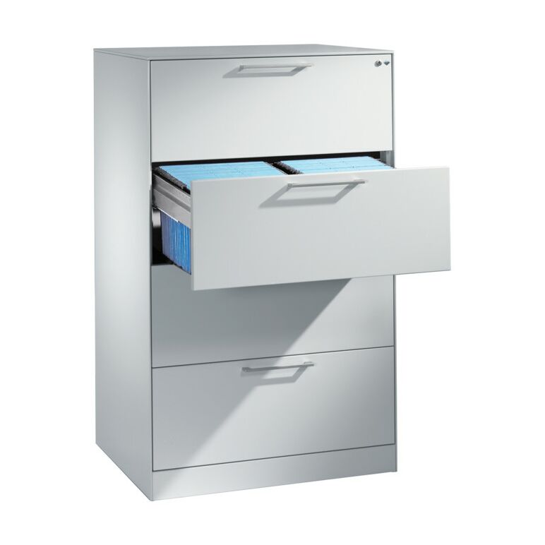 C+P Karteischrank Asisto für Karteikarten DIN A4 quer, 4 Schubladen, zweibahnig Front Lichtgrau Korpus Lichtgrau