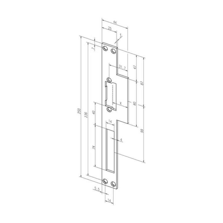 Lappenschließblech 14C ktg.B.44xL.250mm DIN L/R ASSA ABLOY
