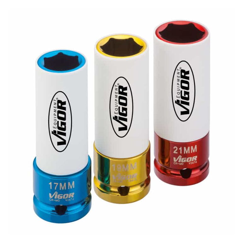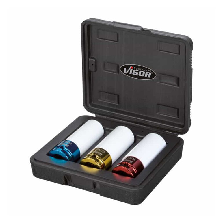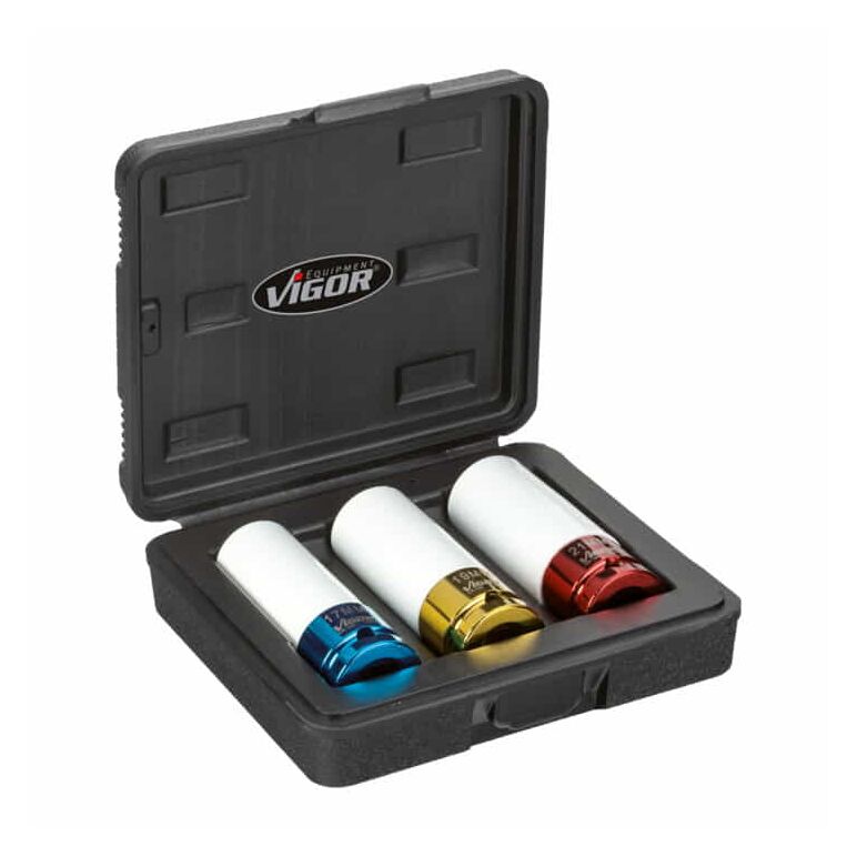 VIGOR Schlagschrauber Steckschlüssel Satz V2522 Vierkant hohl 12,5 mm (1/2 Zoll) Außen-Sechskant Profil 3 teilig