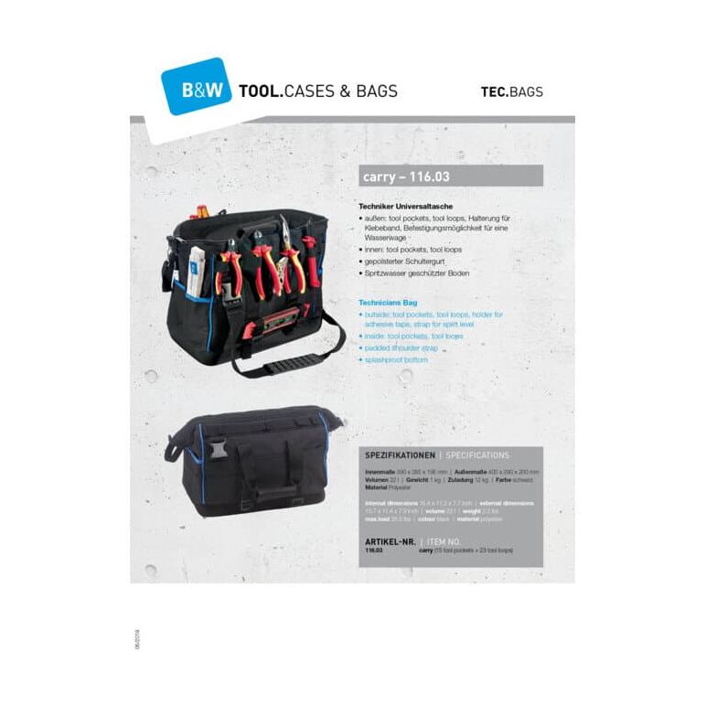 B & W International Carry 116.03 TechnikerInnen Werkzeugtasche unbestückt (B x H x T) 400 x 200 x 2