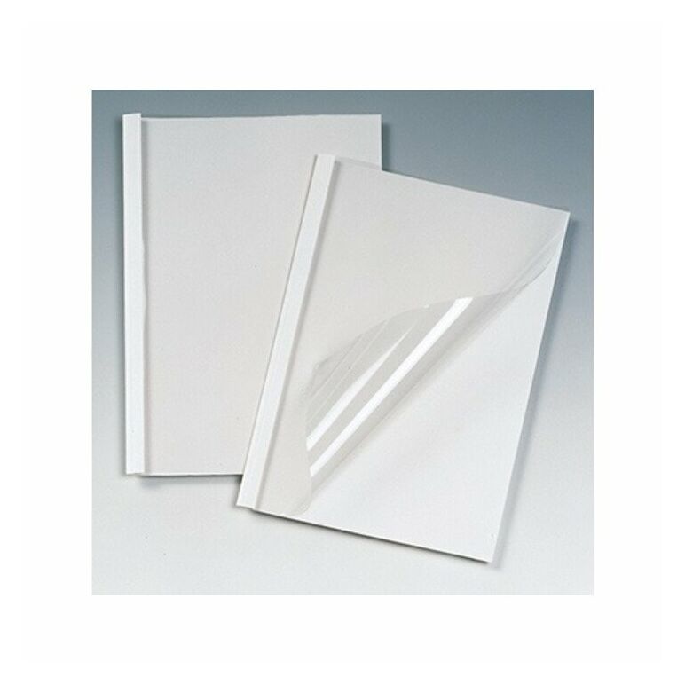 Mit den edlen Standard Thermo-Bindemappen sind Dokumente perfekt gebunden. Die transparente PVC-Vorderseite bringt die Titelseite gut zur Geltung und ist in Verbindung mit der seidenmatt weißen Rückseite ein Garant für dauerhaft sicher gebundene Dokumente.