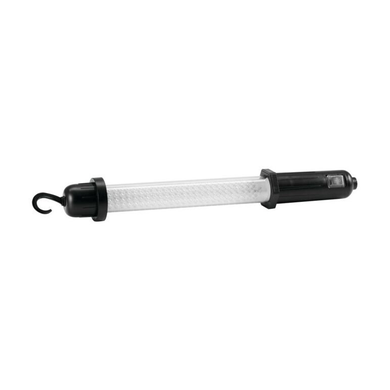 Eigenschaften:Akku-Stableuchte (IP20) mit drehbarem Kunststoffhaken; Ein- / Aus-Schalter, helles Flächenlicht über 160 LEDsMit Ladegerät 230 V / 12 V und Kfz-Ladekabel.