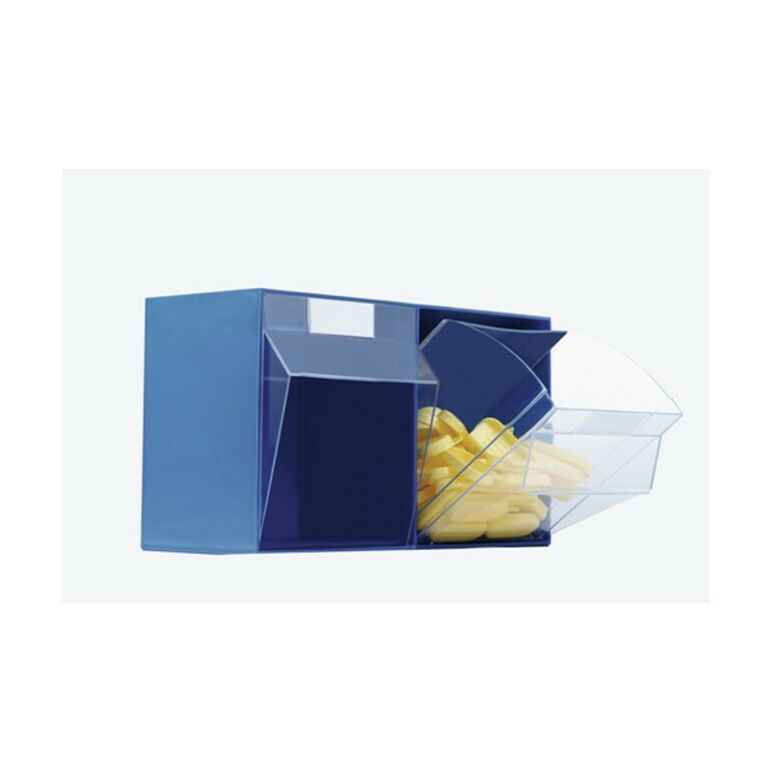 Klarsichtbehälter aus Kunststoff in weißem Gehäuse aus schlagfestem Polystyrol · Behälter sind zur Entnahme nach vorn schwenkbar und lassen sich herausnehmen · Gehäusebreite 600 mm · stapelbar und für die Wandbefestigung geeignet Weitere technische Eigenschaften: · Material: Kunststoff