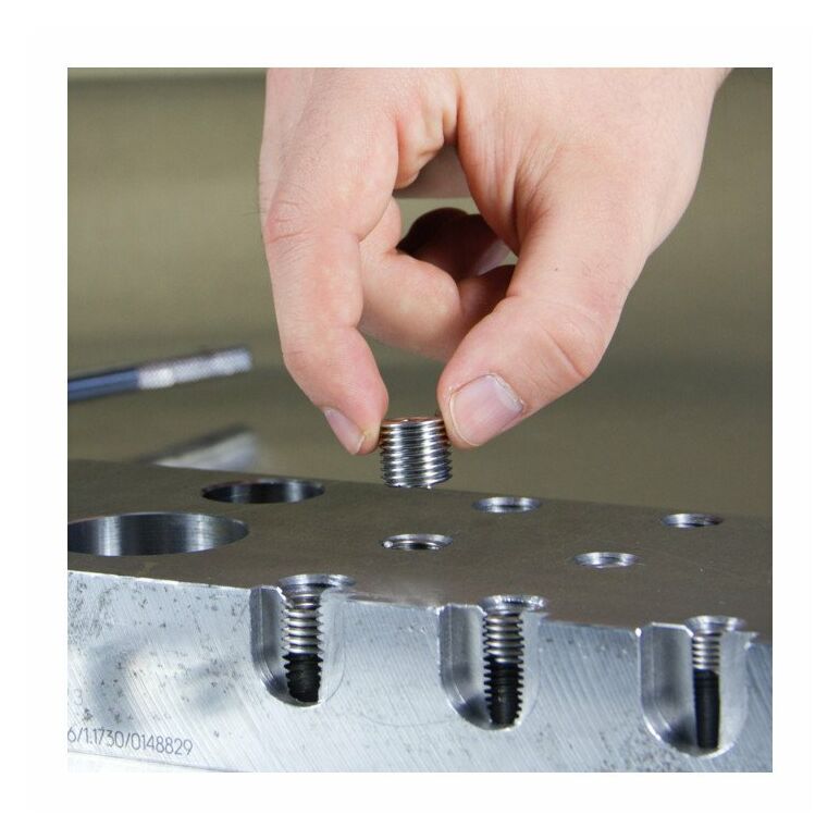 EigenschaftenSatz M 3 1 Spiralbohrer Ø 3,1 mm + 1 Einschnittgewindebohrer DIN 352 HSS für Gewinde M 3 x 0,5 + 1 Einbauwerkzeug M 3 + 1 Zapfenbrecher Ø 2,0 mm + je 5 Gewindeeinsätze Höhe = 1,0 x Ø / Höhe = 1,5 x Ø / Höhe = 2,0 x Ø