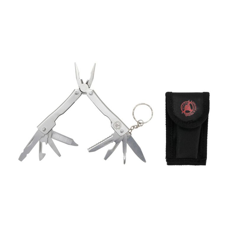 Eigenschaften:Universalwerkzeug im TaschenformatEnthaltene Werkzeuge:MesserKreuzschlitzschraubendreherKapselheberMini-SägeMittlerer SchraubendreherNagelfeile / NagelreinigerSchlitzschraubendreherKombinationszange, 100 mmRostfreier StahlKlappbar (eingeklappt nur 70 mm)Mit Gürteltasche