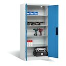 C+P Akku-Ladeschrank für 5 E-Werkzeuge, H1950xB930xT500mm, Lichtblau/Lichtgrau