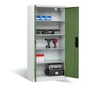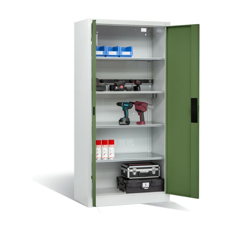 C+P Akku-Ladeschrank für 5 E-Werkzeuge, H1950xB930xT500mm, Resedagrün/Lichtgrau